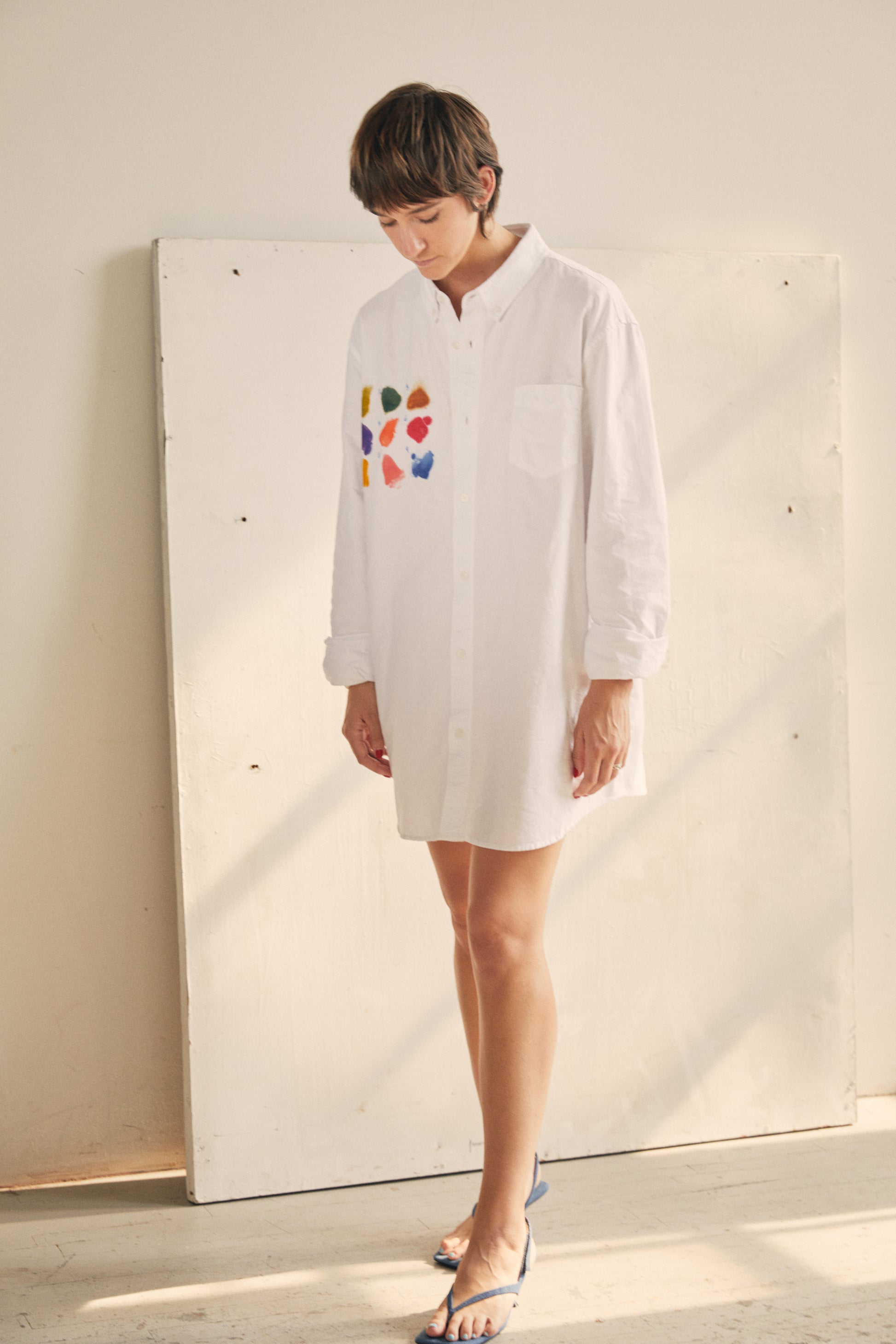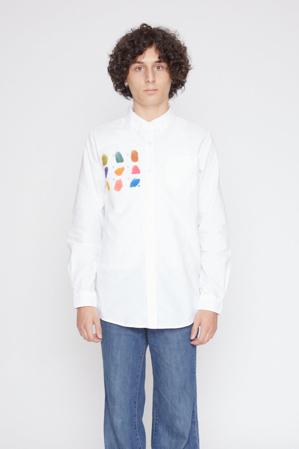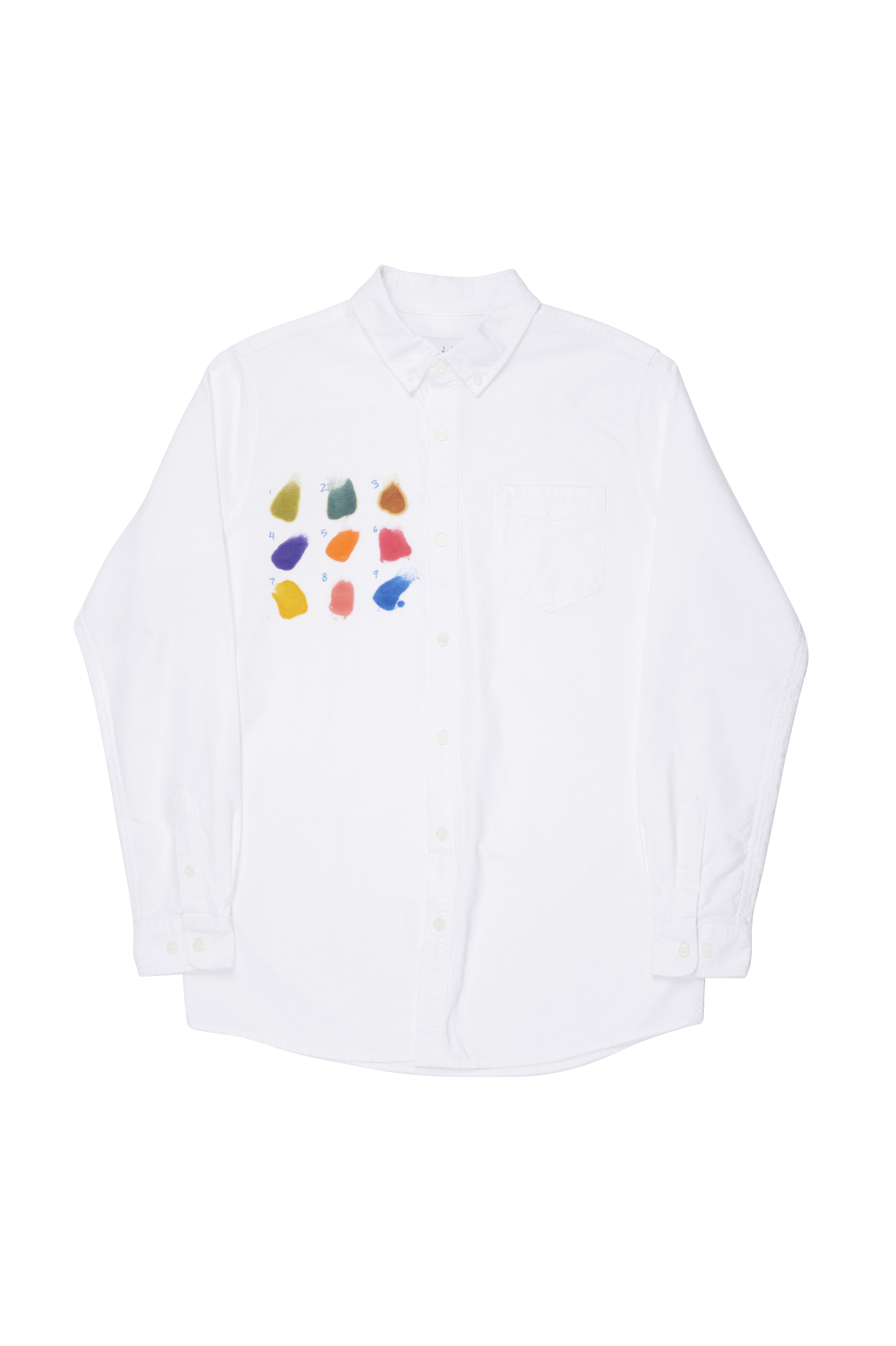 This button-up shirt shows the the process behind the development of our custom-mixed dyes. Each shirt is hand-painted and hand-annotated in the USA, highlighting the unique nature of this dye process.