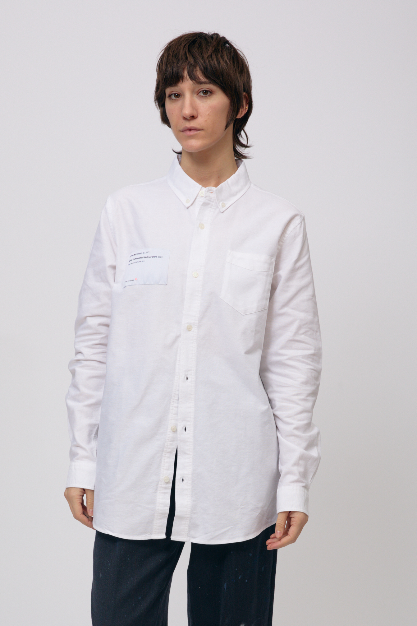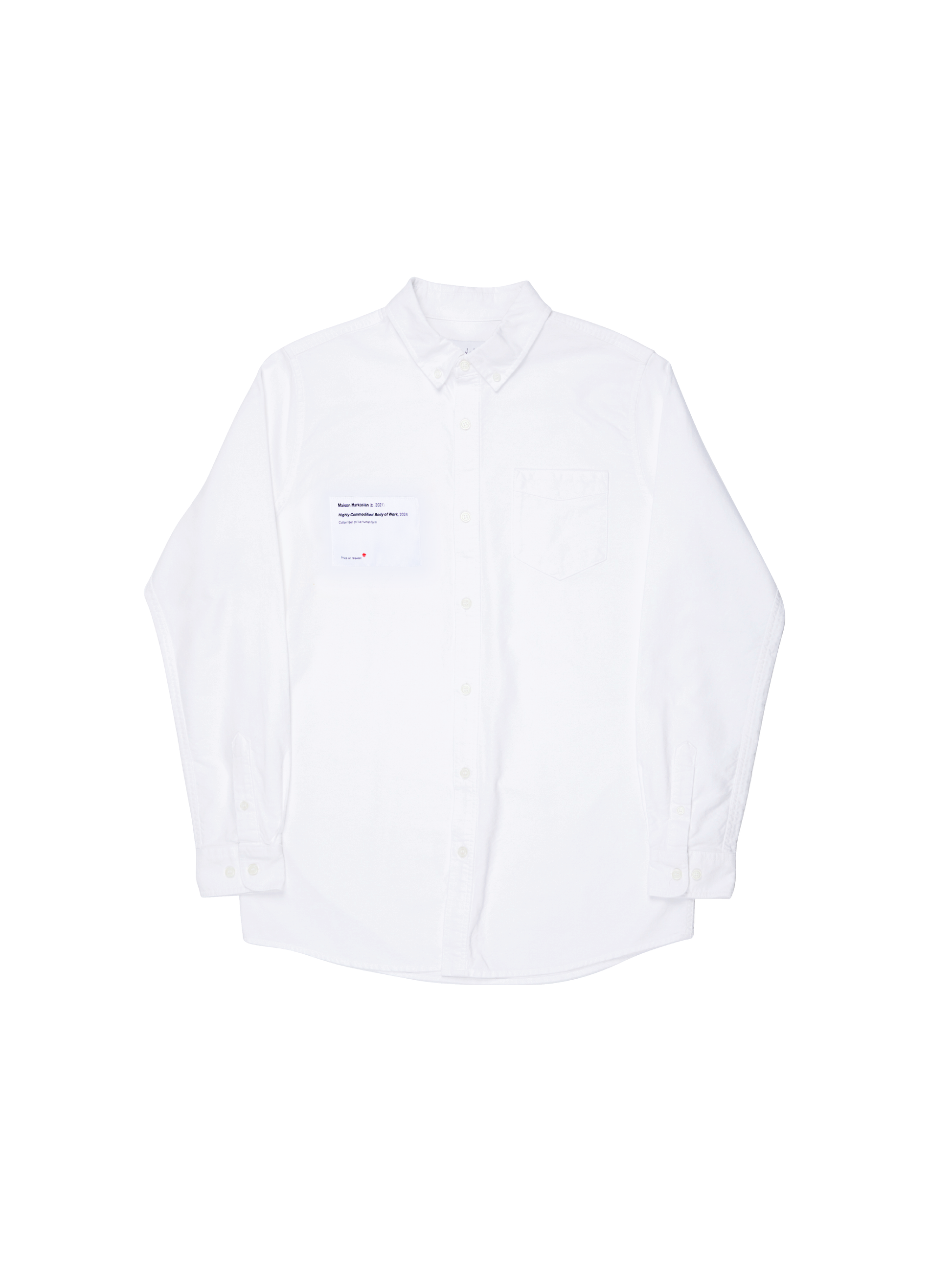 The Gallerist Tee features a woven replica of a gallery plaque, complete with a hand-sewn sequin that imitates the red stickers used to communicate when a work of art is sold. These shirts are made from 100% cotton with a 100% polyester woven label decoration. They're sewn with a unisex fit, so please consult our size chart carefully. We recommend washing these shirts inside out in cool water and tumble drying them on low heat.