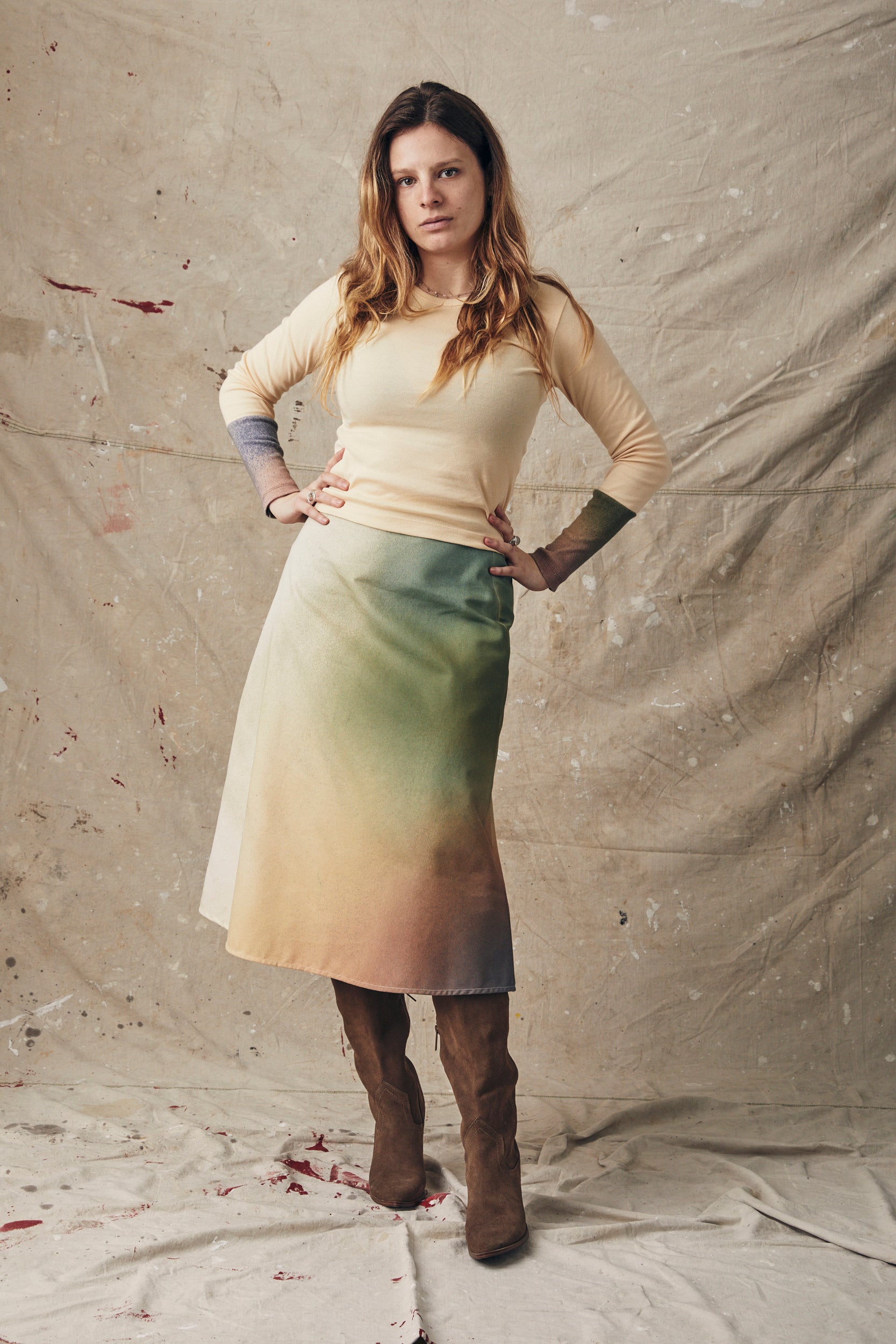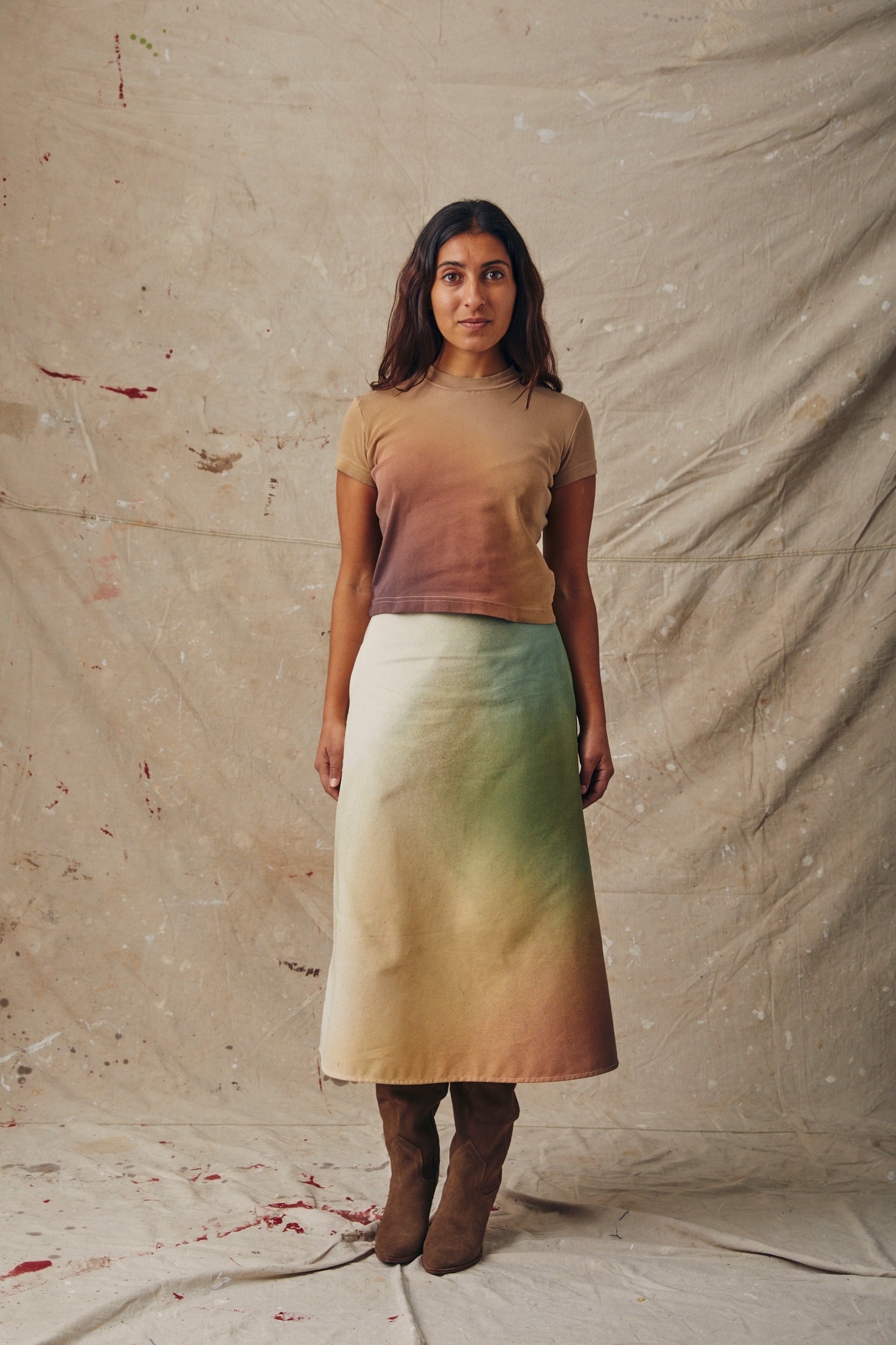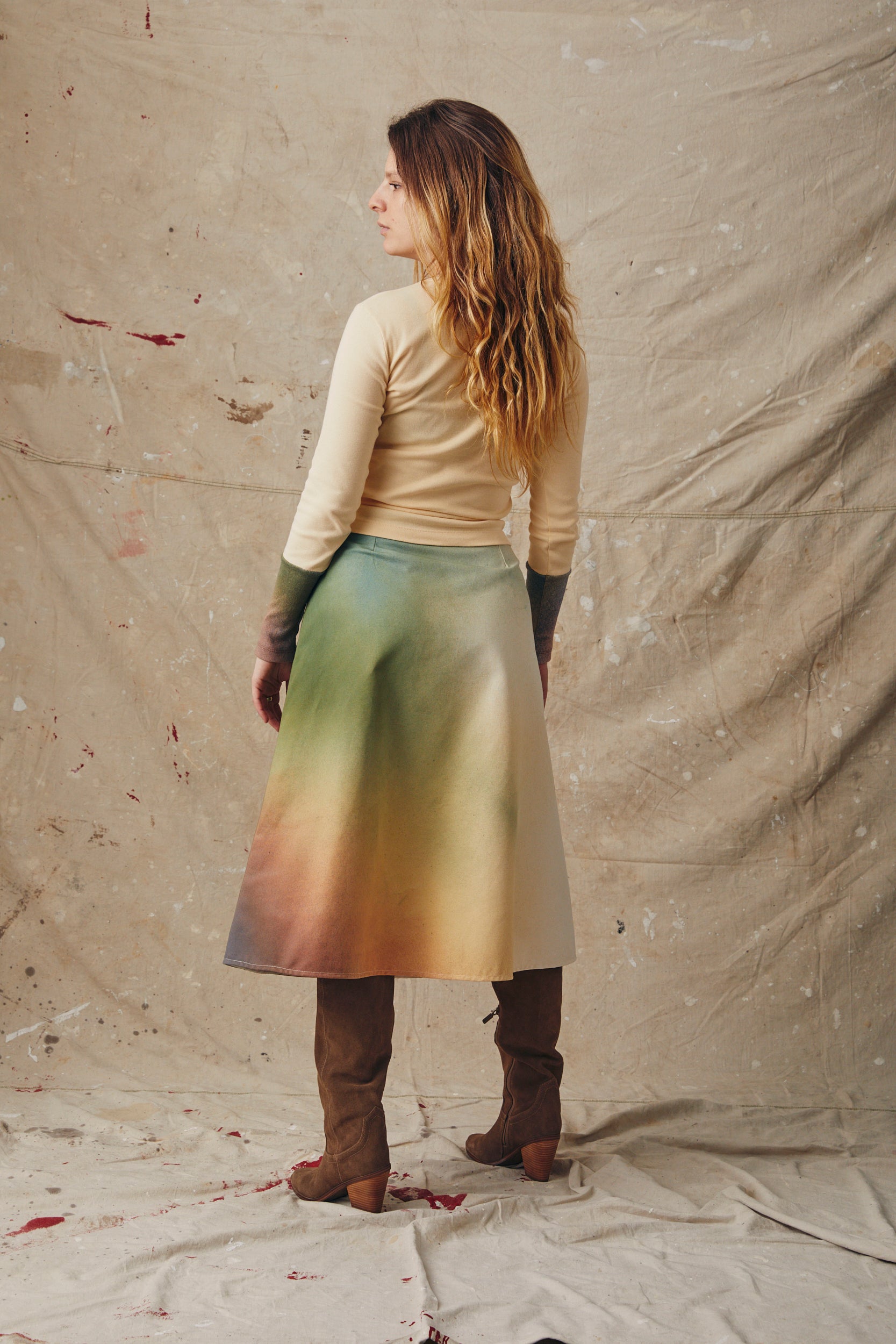 Inspired by the dynamic color shifts of changing seasons, each Ceres Meridian skirt is hand-painted using our custom-mixed dyes. Due to the handmade nature of these garments, each gradient turns out a little different, so please expect some minor variation between the skirt pictured here and the skirt you receive.
