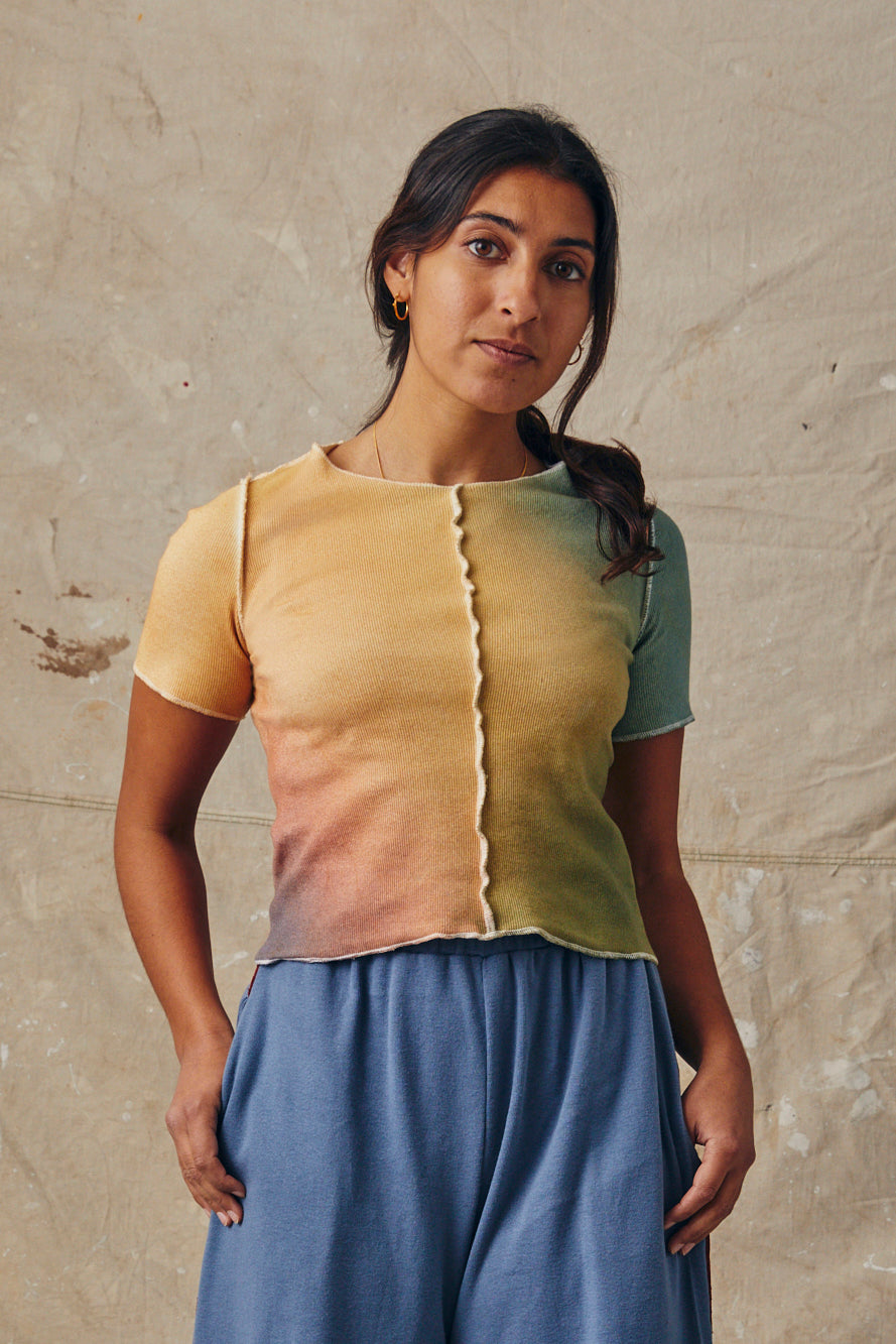 Inspired by the dynamic color shifts of changing seasons, each Ceres Meridian tee is hand-painted using our custom-mixed dyes. Due to the handmade nature of these shirts, each gradient turns out a little different, so please expect some minor variation between the shirt pictured here and the shirt you receive.