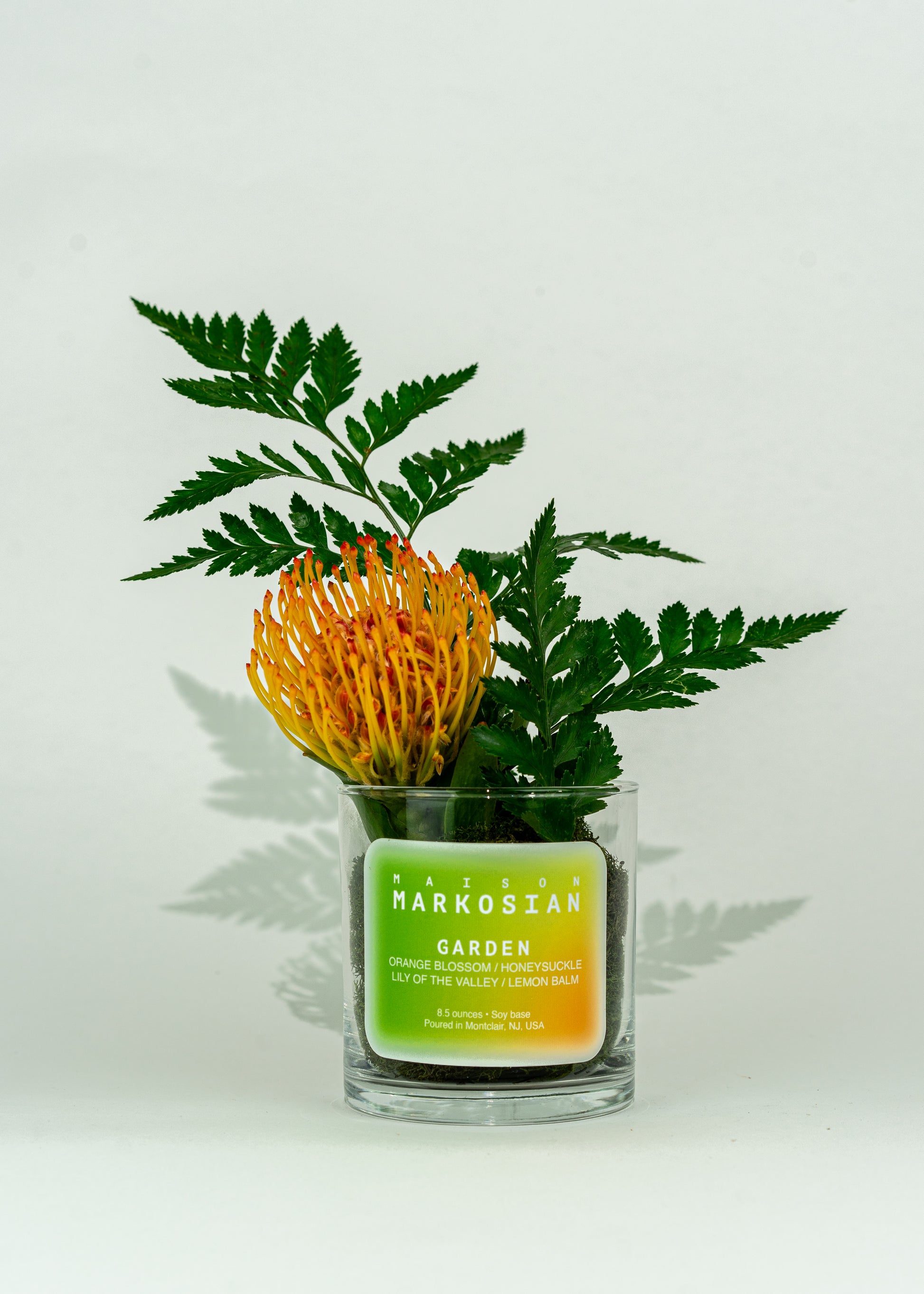 The Garden candle combines a triad of photorealistic floral notes, creating a scent that conjures summer even in the dead of winter. Orange blossom, honeysuckle, and lily of the valley blend to create the impression of sunshine warming delicate white petals. This candle is floral-forward but not sweet, and the fresh aroma of lemon balm adds an herbaceous compliment to the exuberant blooms.