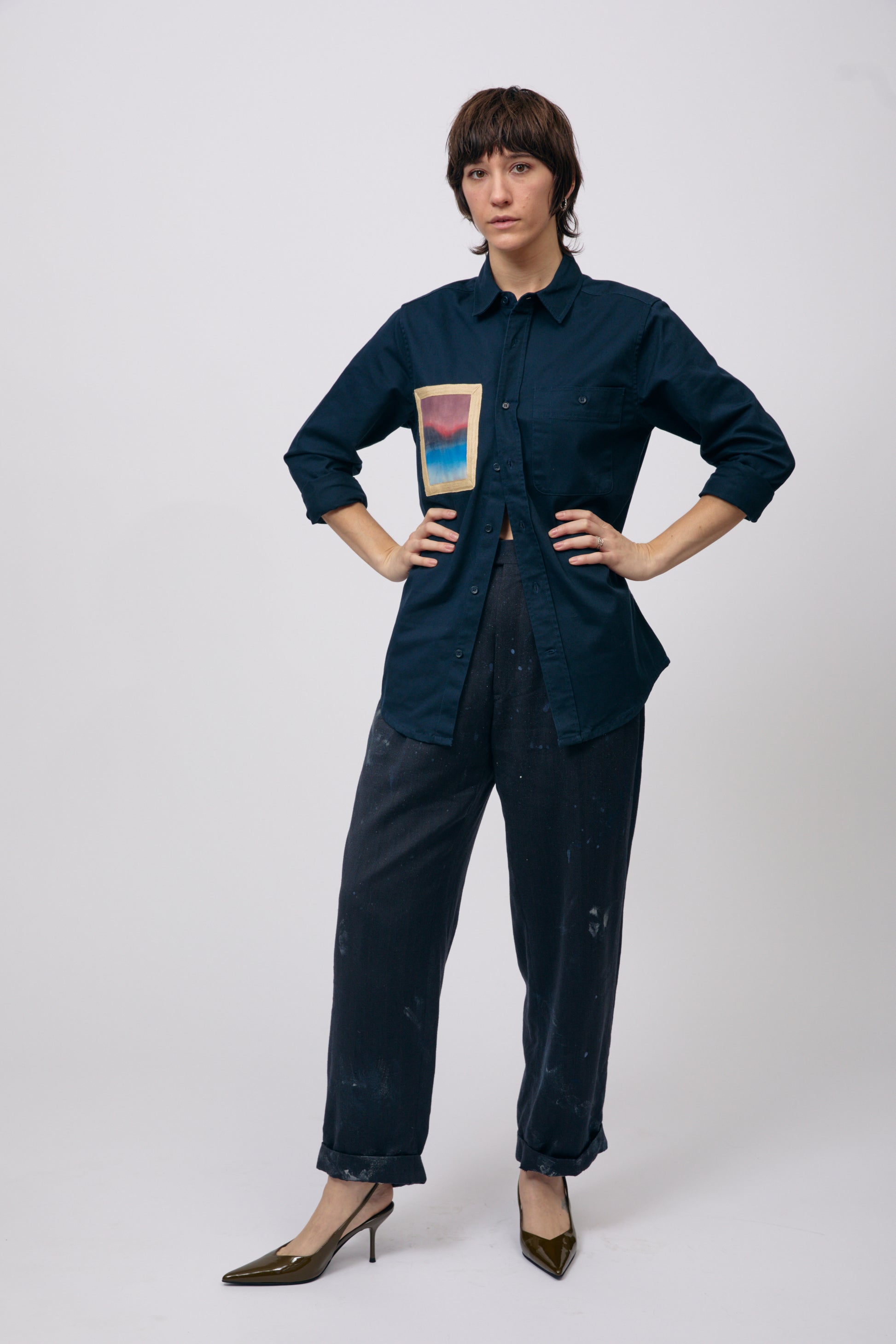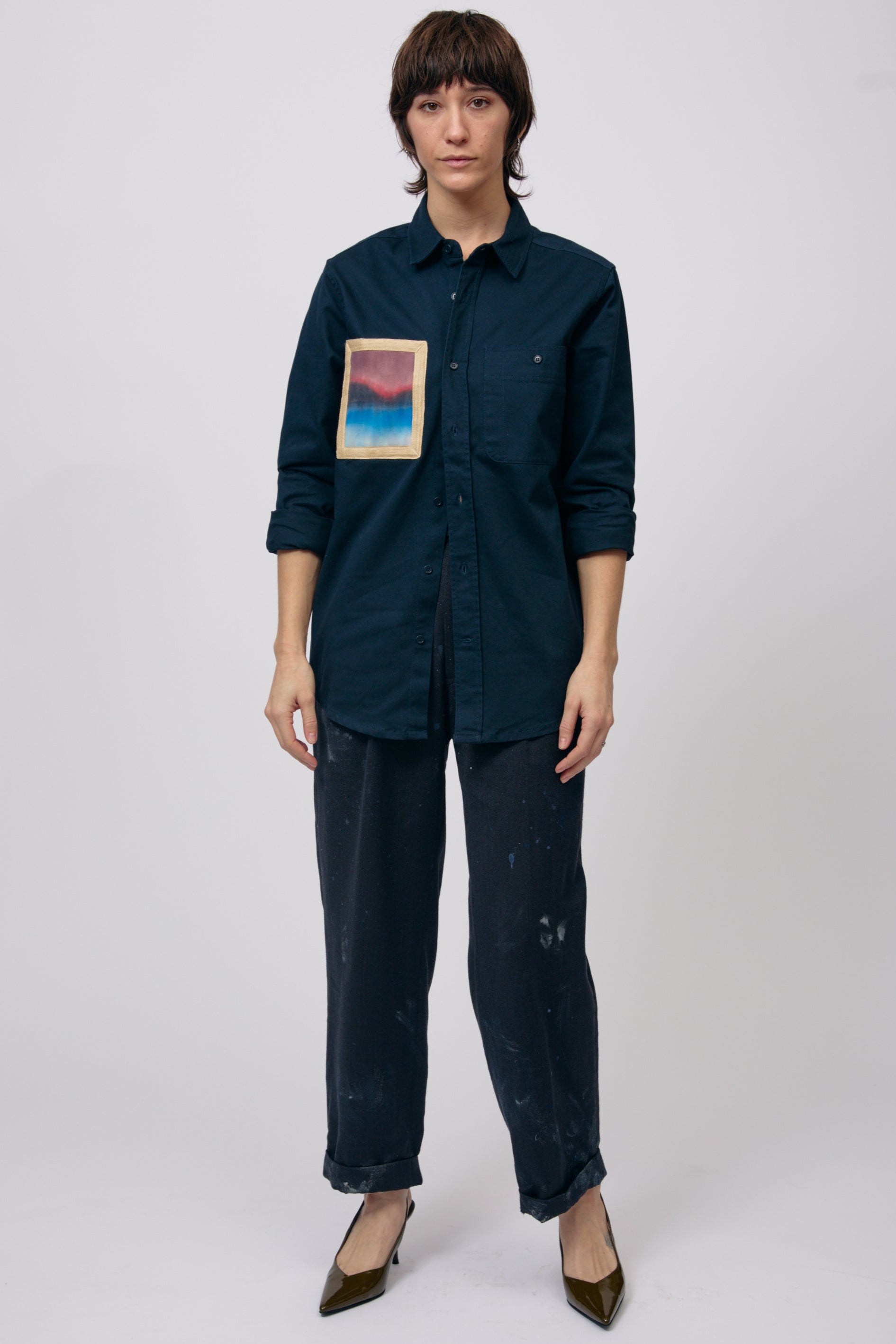 Inspired by our love of landscape painting, these shirts feature a hand-painted canvas pocket designed to emulate the look of a painting in a frame.