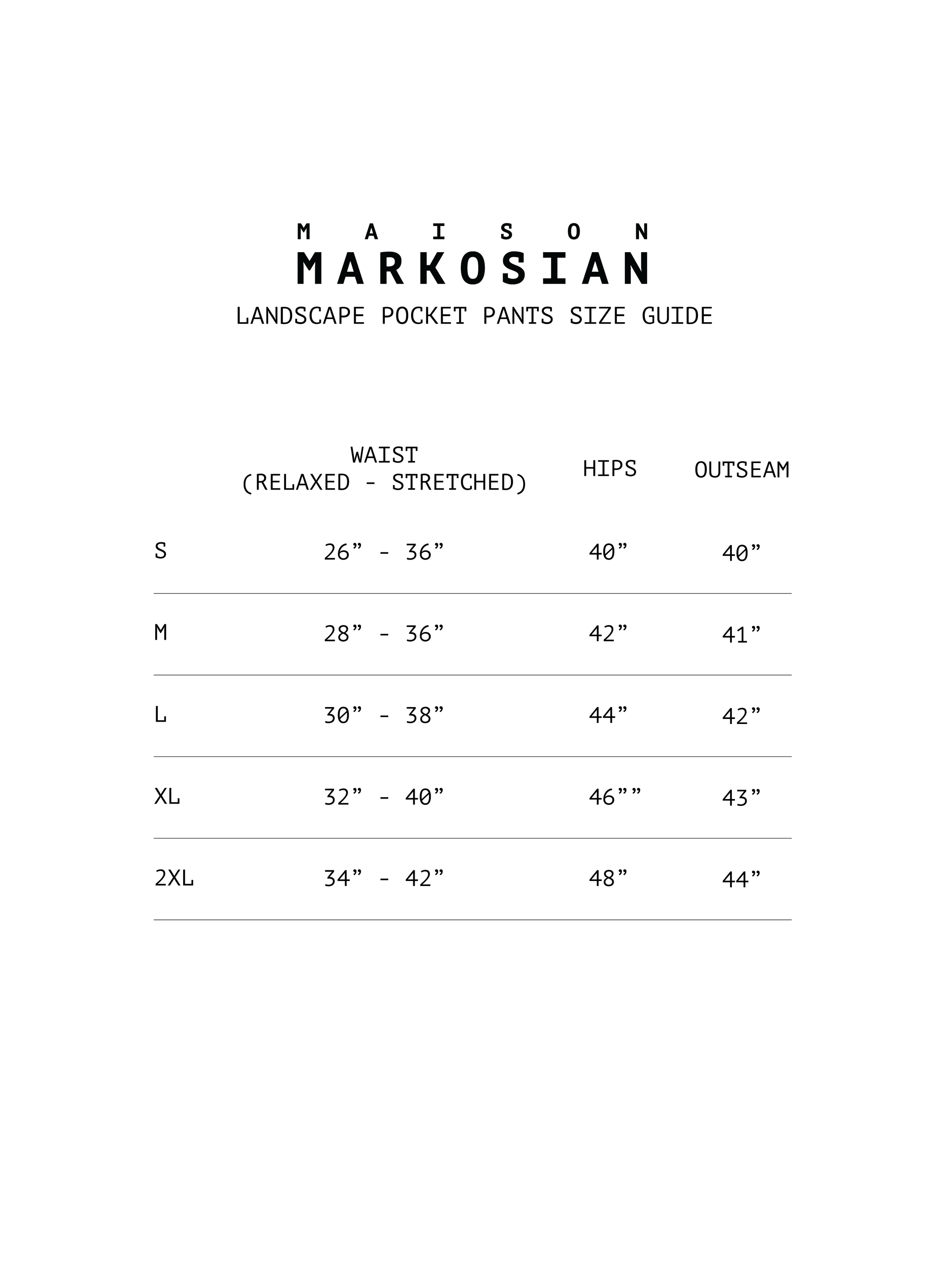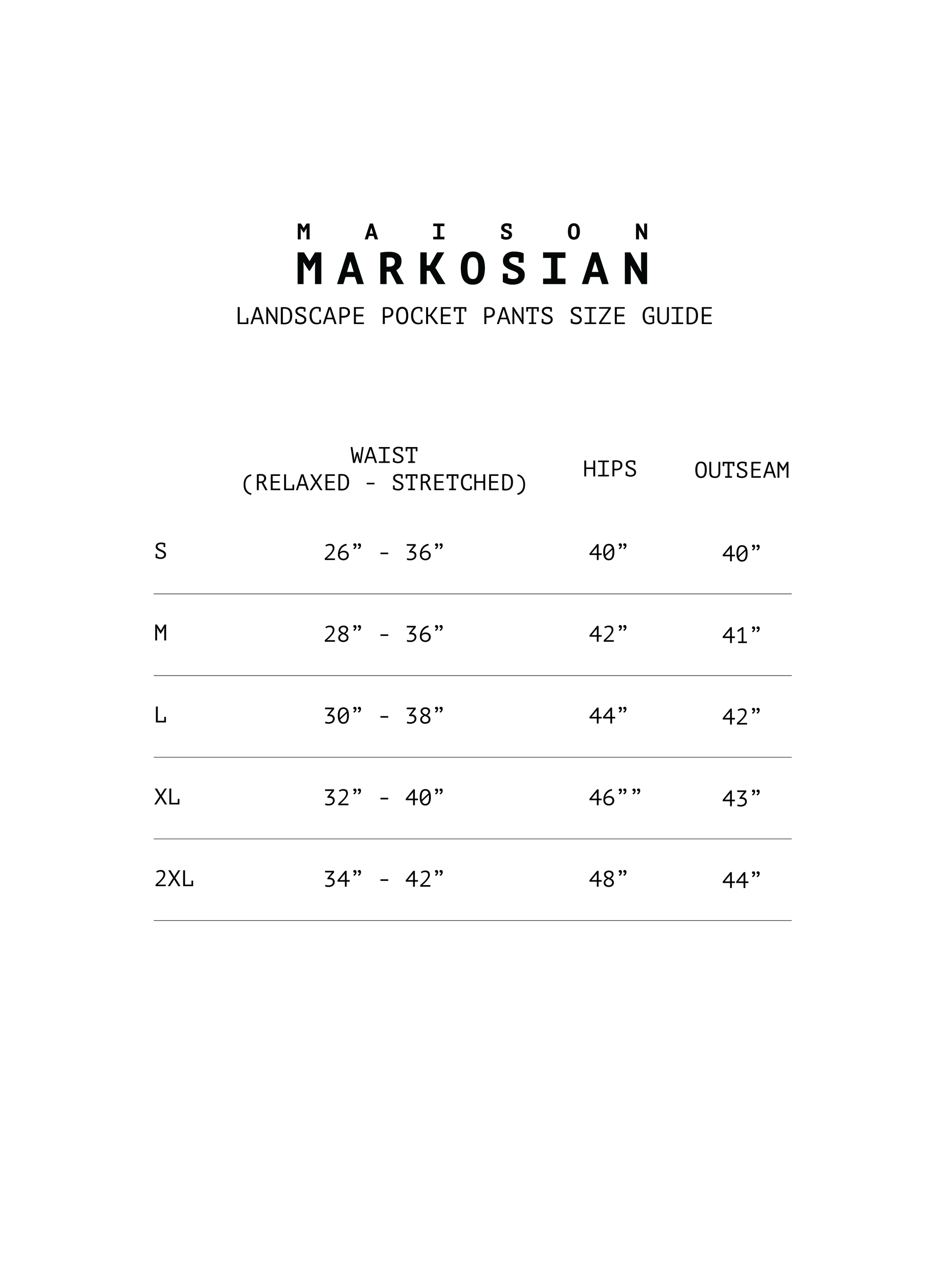 We recommend dry cleaning these garments (the wild silk "frame" on the back pocket is delicate), although they can also be hand washed in cool water and hung to dry. These pants are designed to have a unisex fit; please see the size chart in the image carousel for more details.