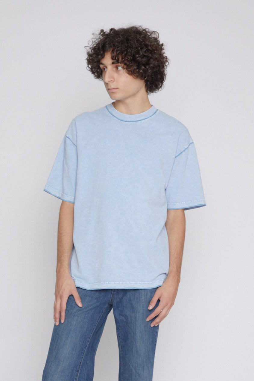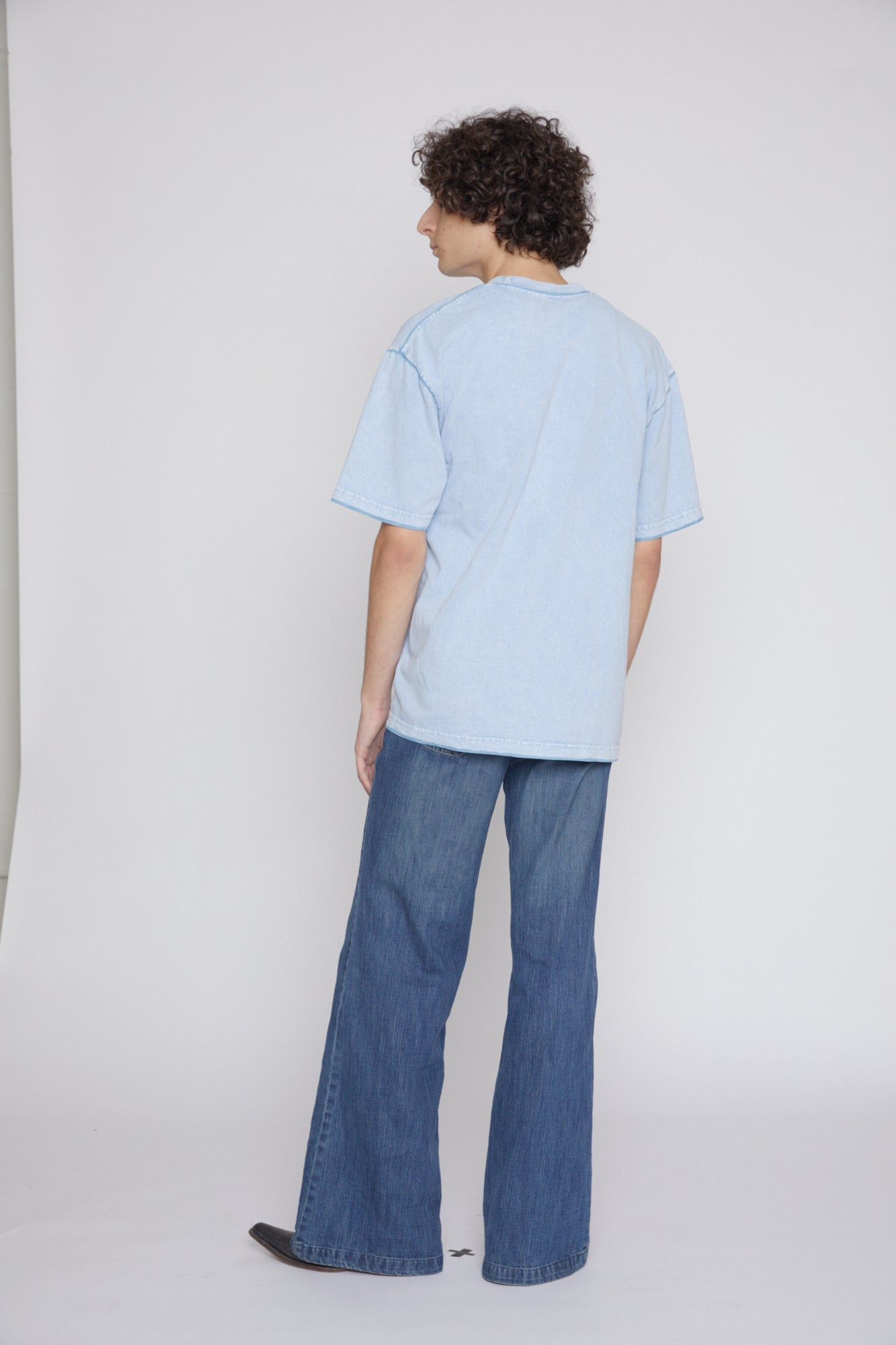 There's really nothing better than the simple contours of a classic garment. Made in the USA from 100% cotton, the dark blue details on this unisex tee are hand-painted in our atelier with our custom-mixed dyes.