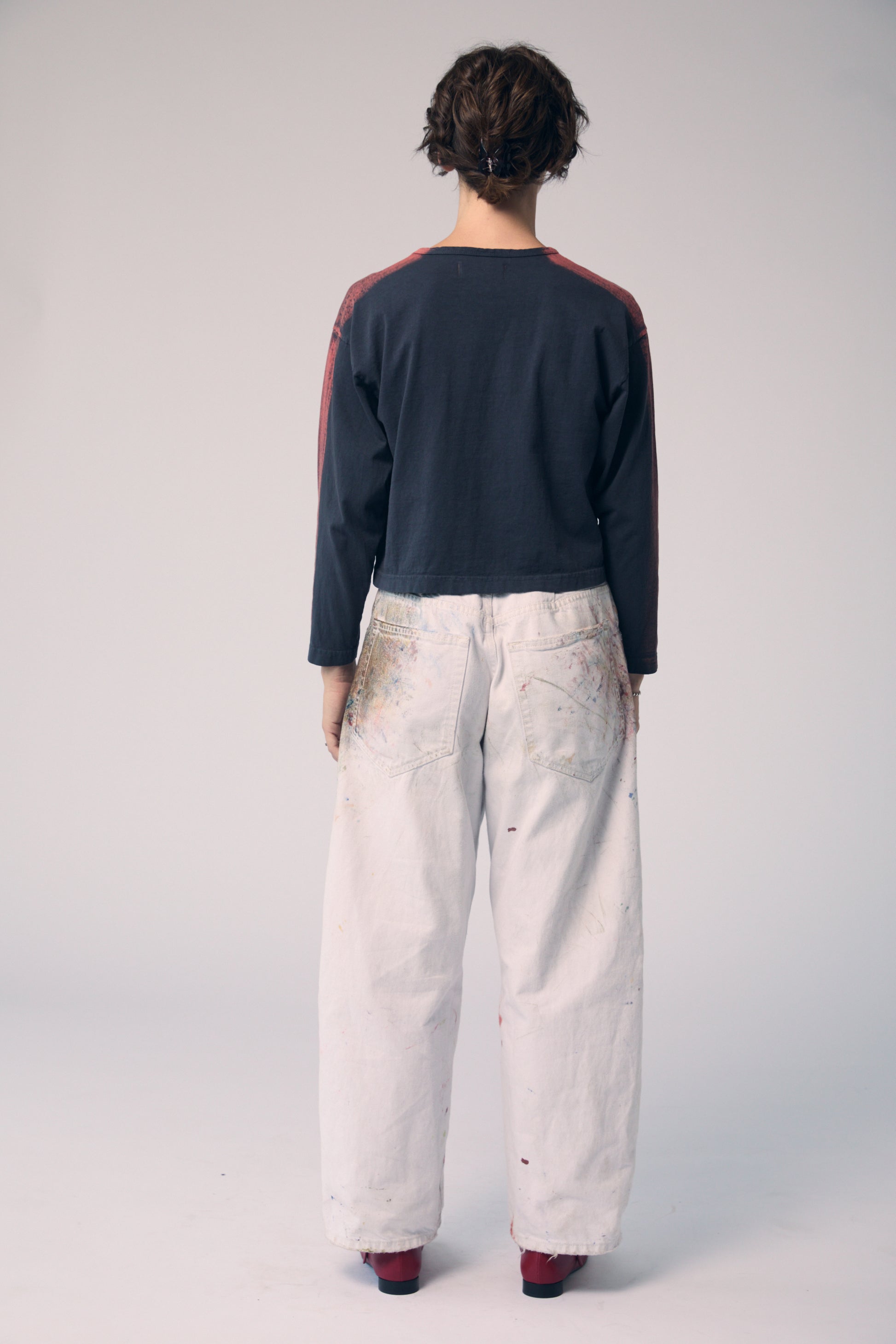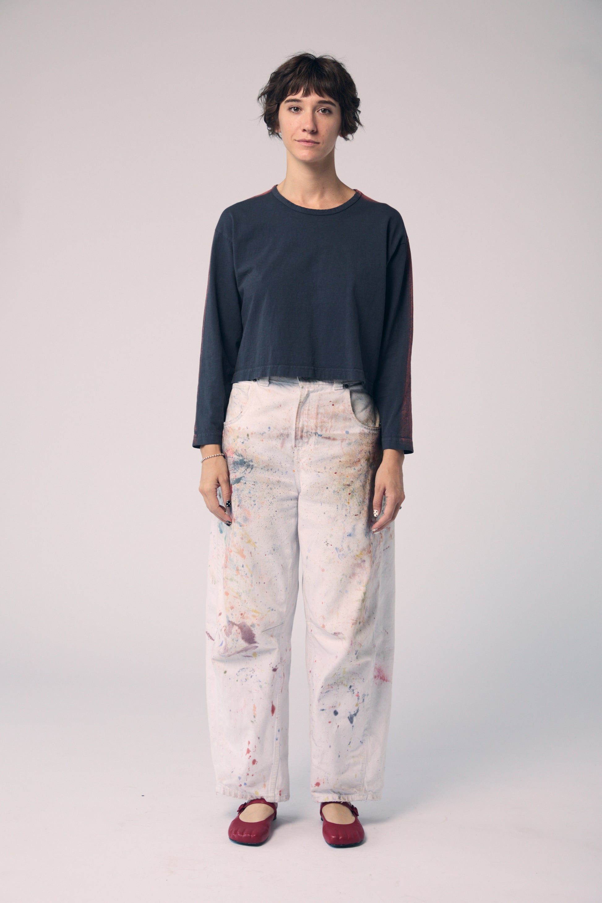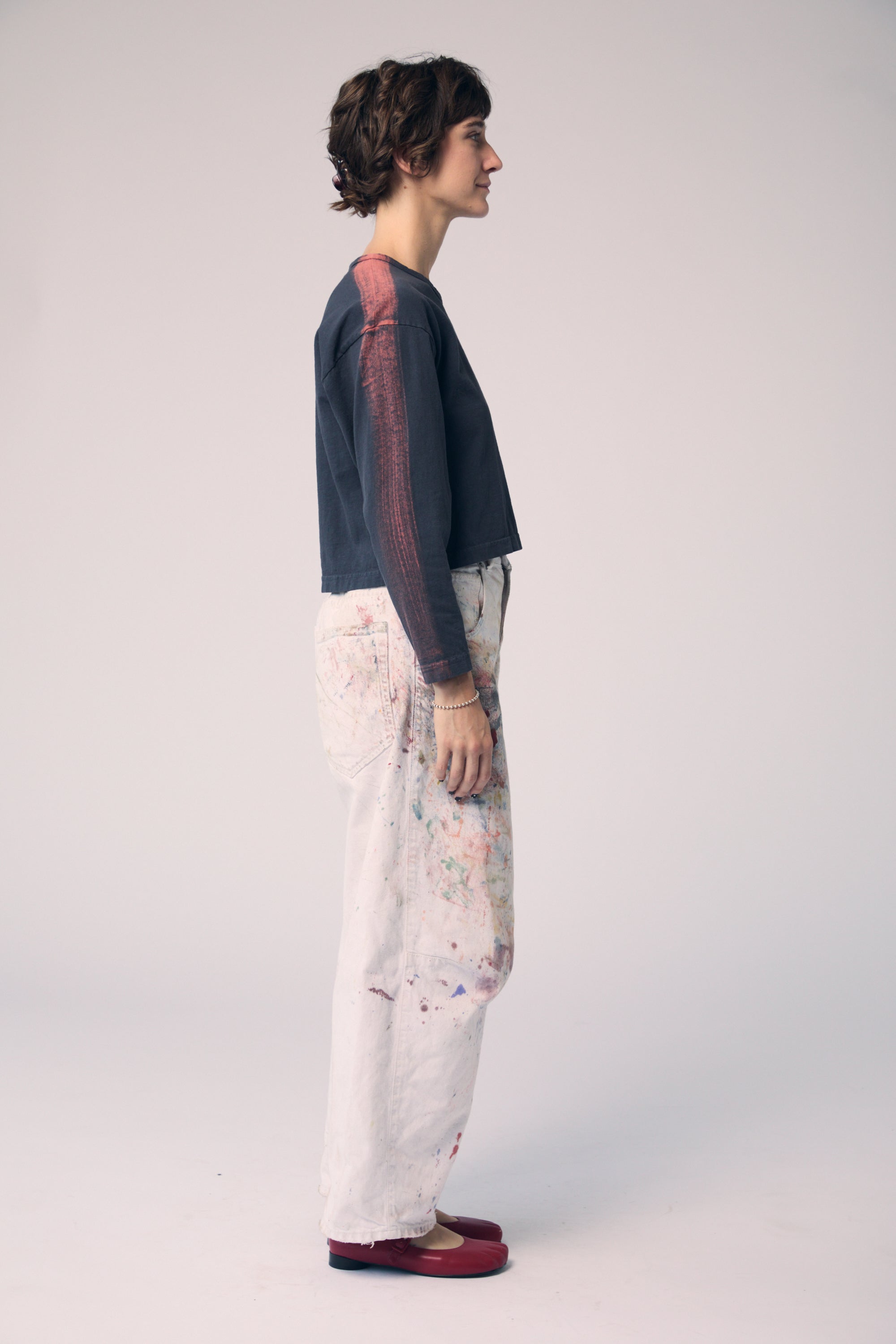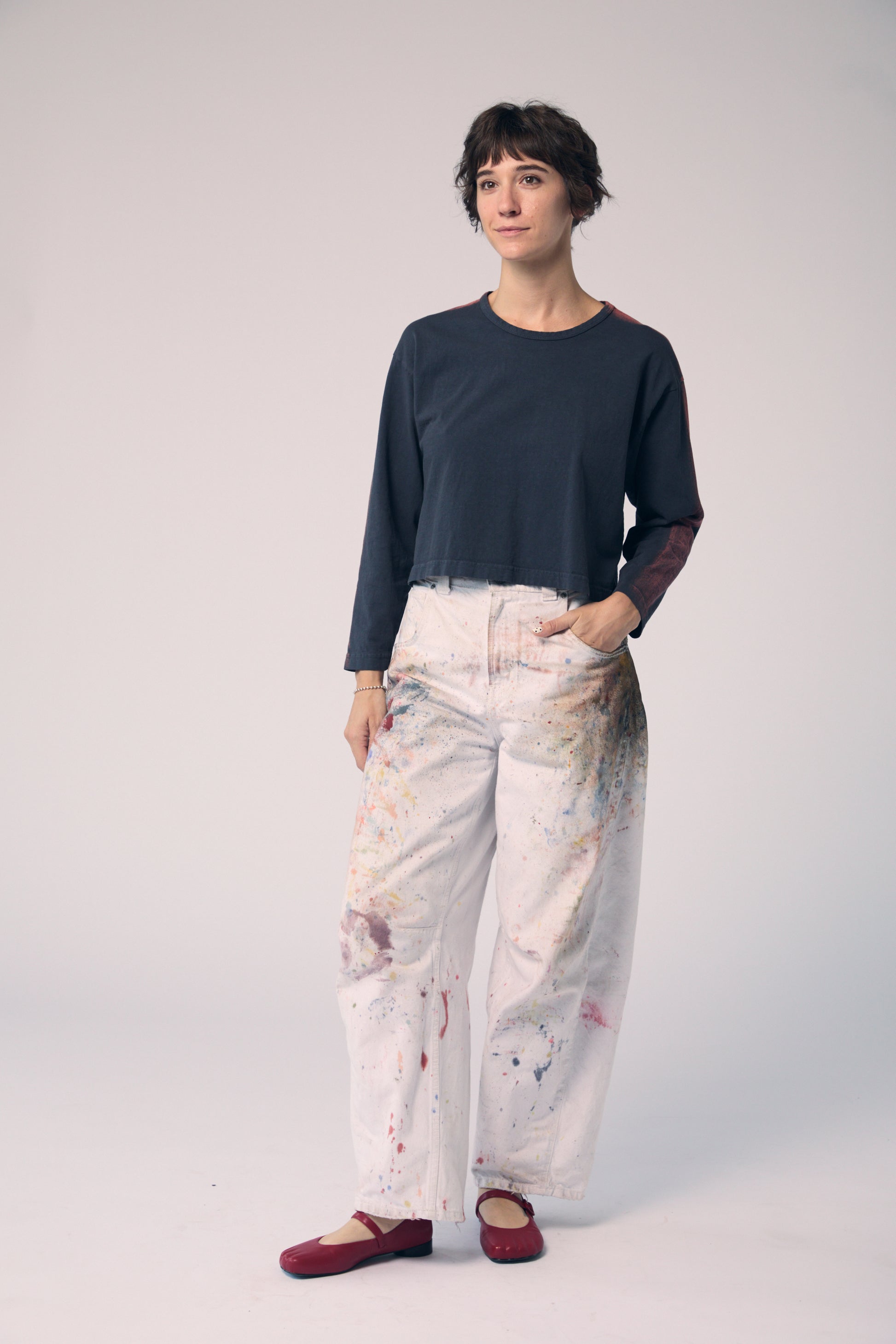 We love making garments that show the maker's hand in the final product, so each of these long sleeve shirts features hand-painted brushstroke graphics on the shoulders and sleeves. The inspiration for these garments came from impressionistic painting, a genre of painting in which artists purposefully left their brushstrokes clearly articulated and unblended.