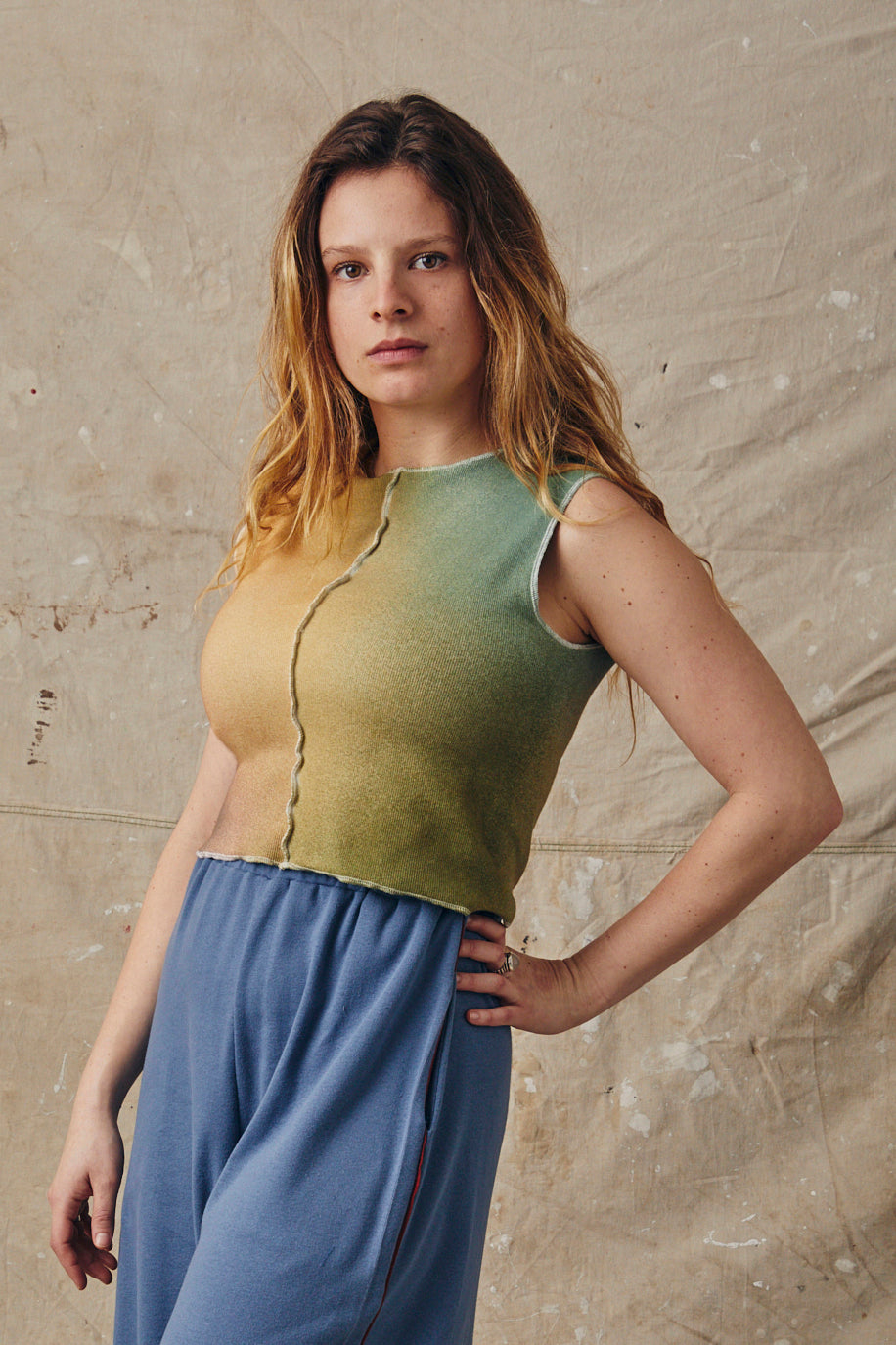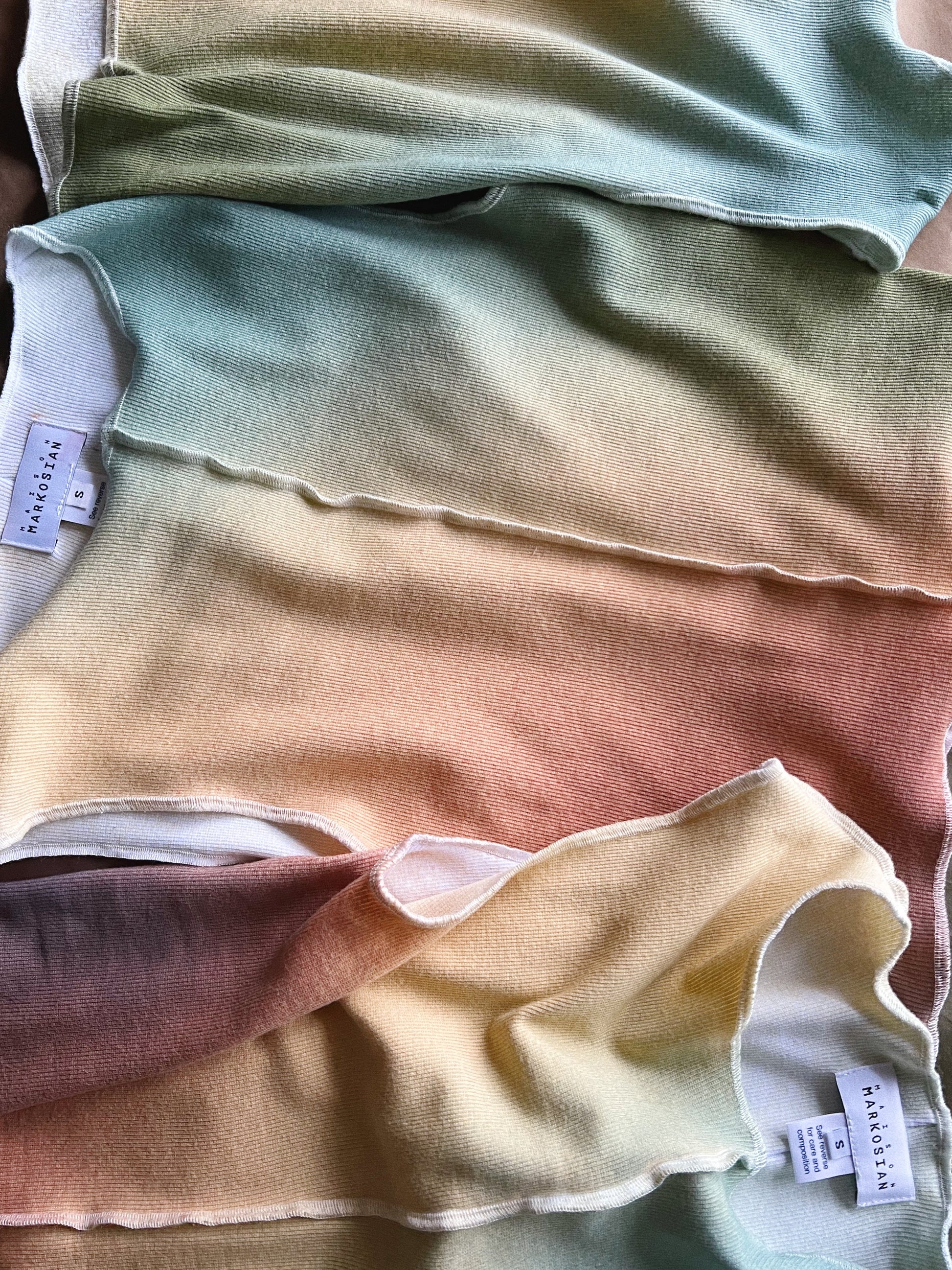 Inspired by the dynamic color shifts of changing seasons, each Ceres Meridian tank is hand-painted using our custom-mixed dyes. Due to the handmade nature of these shirts, each gradient turns out a little different, so please expect some minor variation between the shirt pictured here and the shirt you receive.