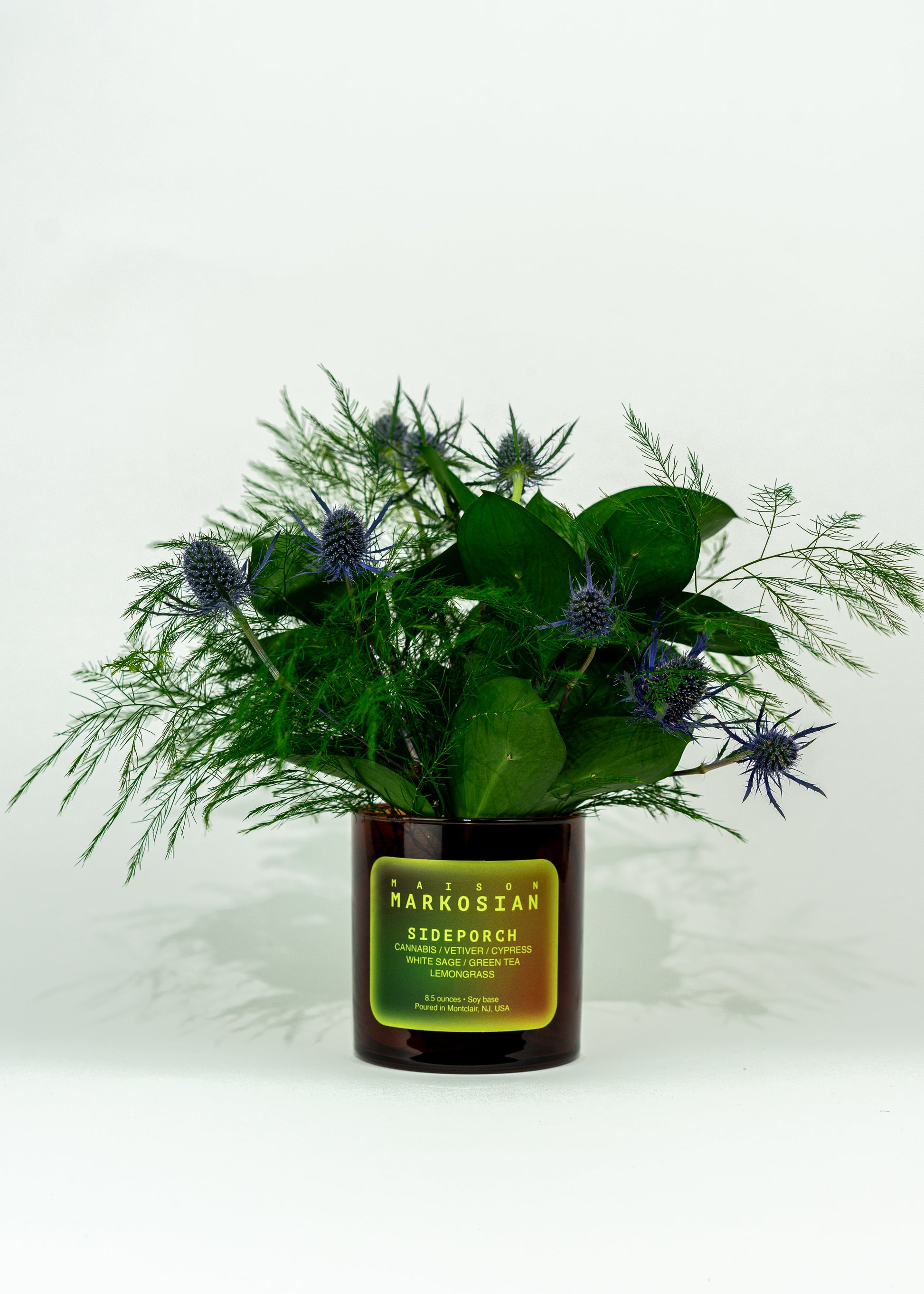 Inspired by long, luxurious nights spent talking with friends on the porch swing, the Sideporch Candle was built by blending our favorite botanicals. Cypress, white sage, lemongrass, and green tea create an herbaceous base, while warm vetiver and cannabis act as subtle accents. The Sideporch Candle is one of our lighter-scented candles and is wonderfully gender-inclusive. Interested in a more immersive experience of this scent? Listen to the SIDEPORCH playlist on Spotify.