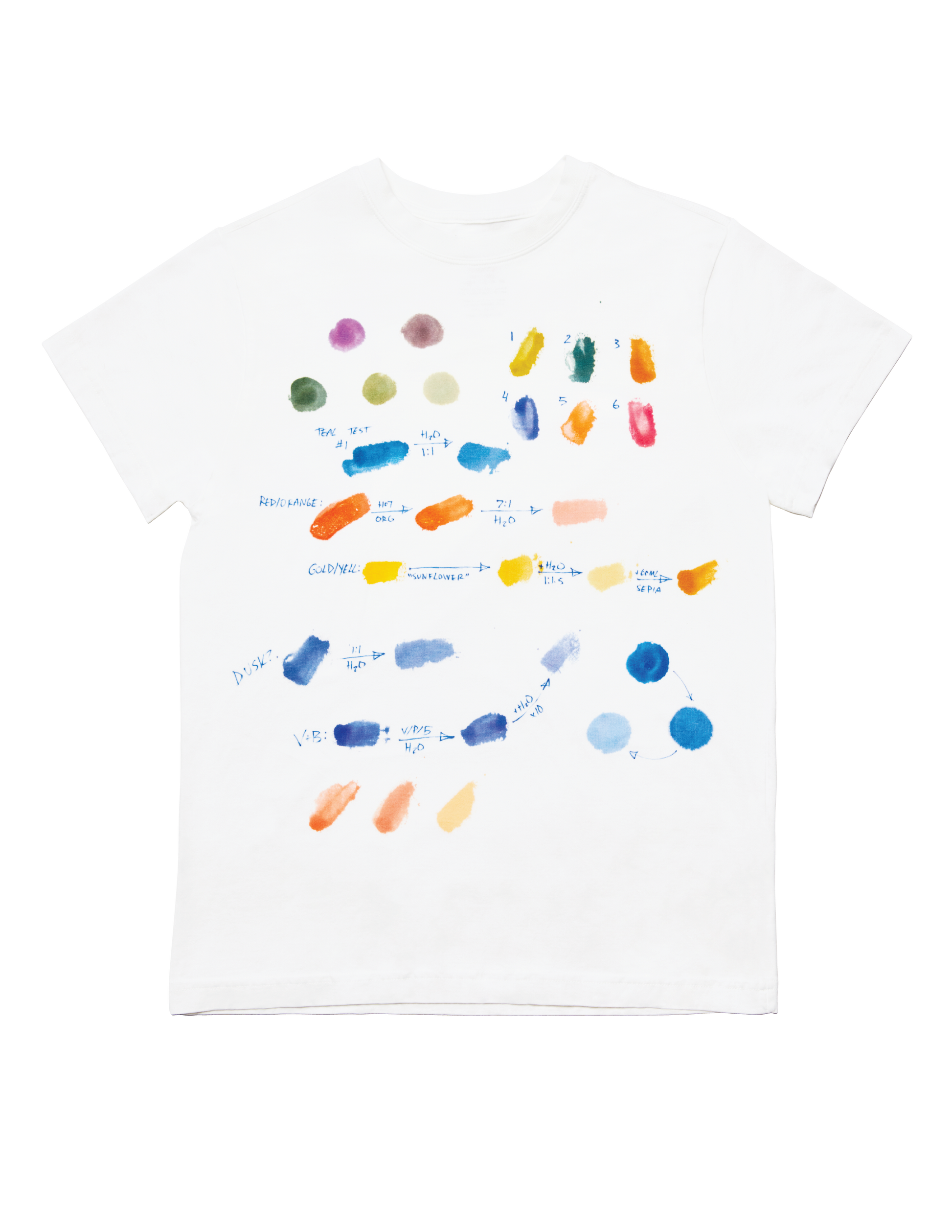 This 100% Supima cotton tee shows the the process behind the development of our custom solar-activated dyes. Each tee is hand-painted and hand-annotated in the USA, highlighting the unique nature of this dye process.