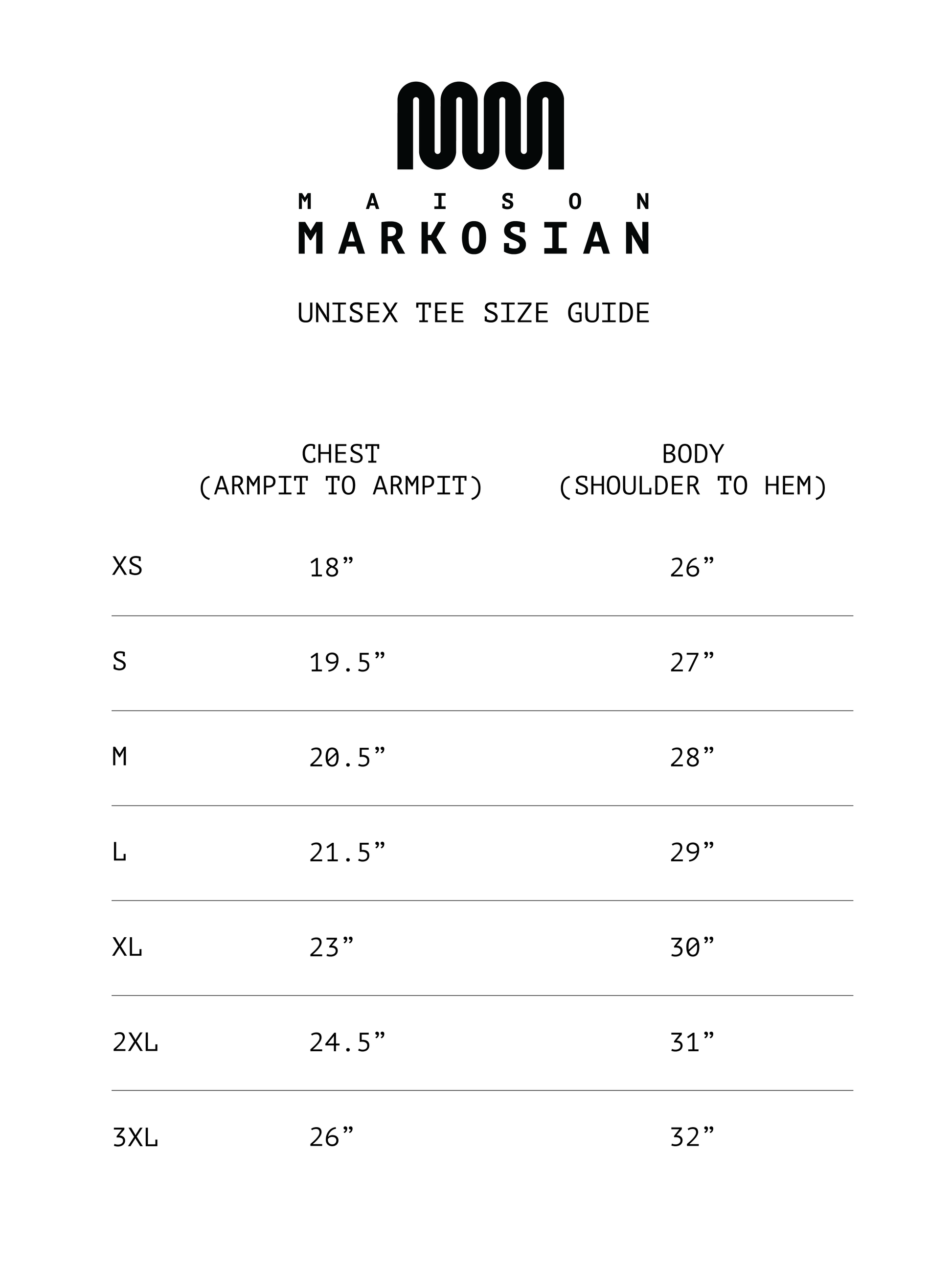 No two Swatch Tees will ever be the same, so please expect some subtle variation between the shirts pictured here and the shirt you receive. Please consult our size chart carefully. These tees are a unisex fit, so they may fit differently than your other tees. Unfortunately, we do not accept returns or exchanges for these tees at this time.